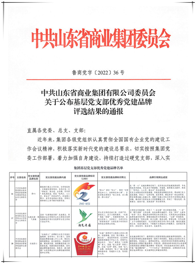 本网讯(组织人事处 吕丽)近日,山东省商业集团有限公司党委公布了基层党支部优秀党建品牌评选结果,永利官网质量控制与绩效考核办公室党支部、会计学院学生党支部、酒店管理学院教师党支部党建品牌获评集团首批基层党支部“优秀党建品牌”。