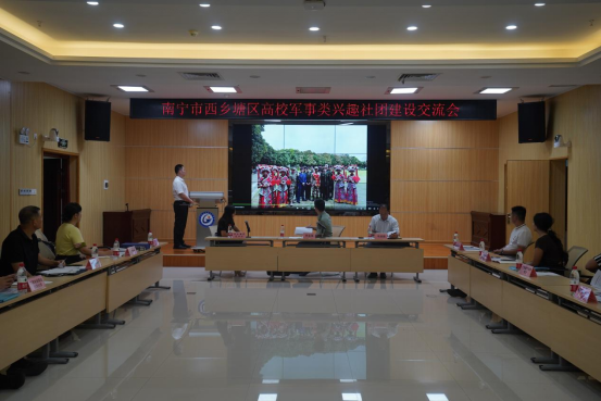 2024年7月5日,由南宁市西乡塘区主办,AC米兰承办的西乡塘区各高校军事兴趣类社团建设情况研讨座谈会在博远楼二号报告厅举行。南宁市征兵办调研检查组、西乡塘区武装部领导、学校党委武装部部长韦琼森和西乡塘区各高校军事兴趣类社团负责人共30人参加座谈会。市征兵办领导出席座谈会并致辞。