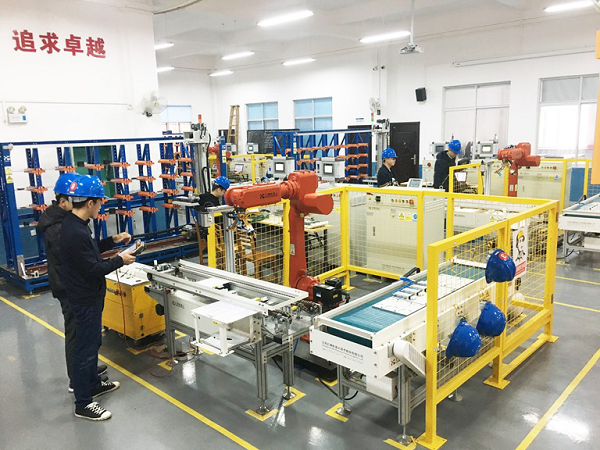 工业机器人专业学生正在学习调试智能制造系统