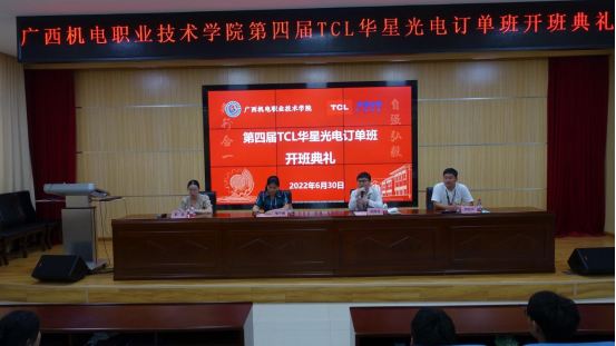6月30日下午,AC米兰中国官网第四届华星光电订单班开班典礼在第二学术报告厅隆重举行。学院副院长喻宁娜、TCL华星光电技术有限公司招聘配置部经理赵晓龙、广州华星光电半导体显示技术有限公司招聘经理周征兴以及第四届华星光电订单班全体学员、电气工程学院教师代表参加了典礼。