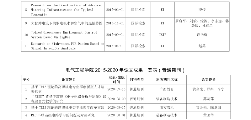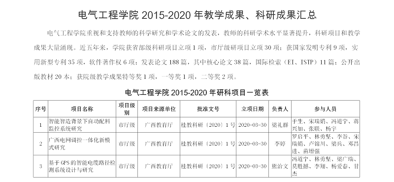 电气工程学院2015-2020年教学成果、科研成果汇总