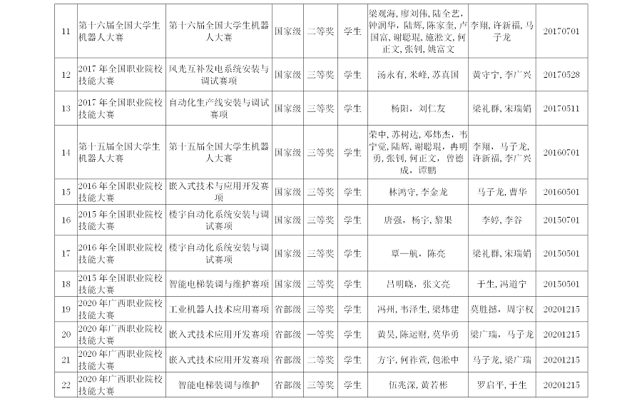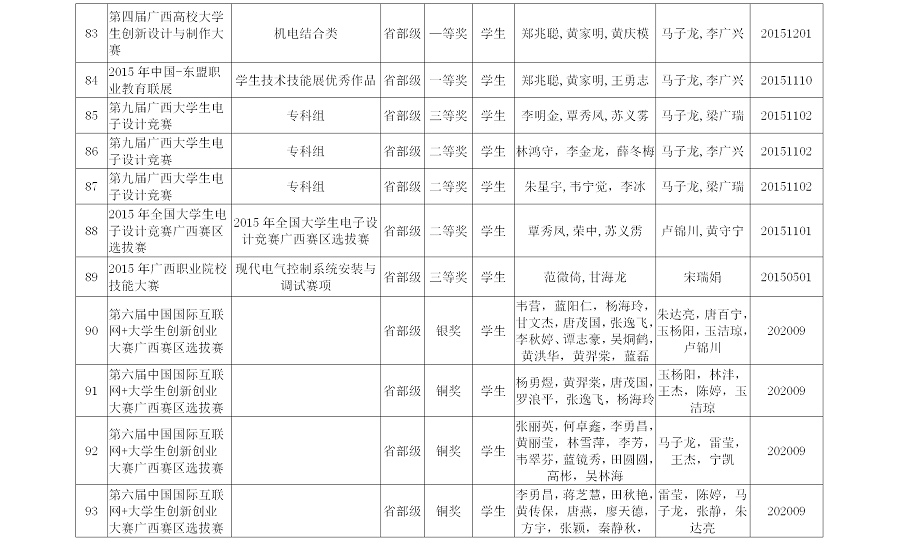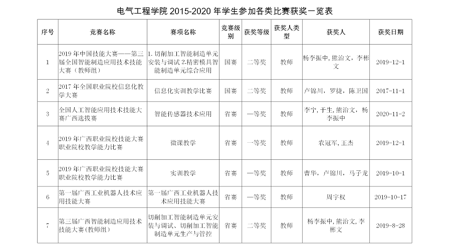 电气工程学院2015-2020师生参加各类竞赛获奖情况