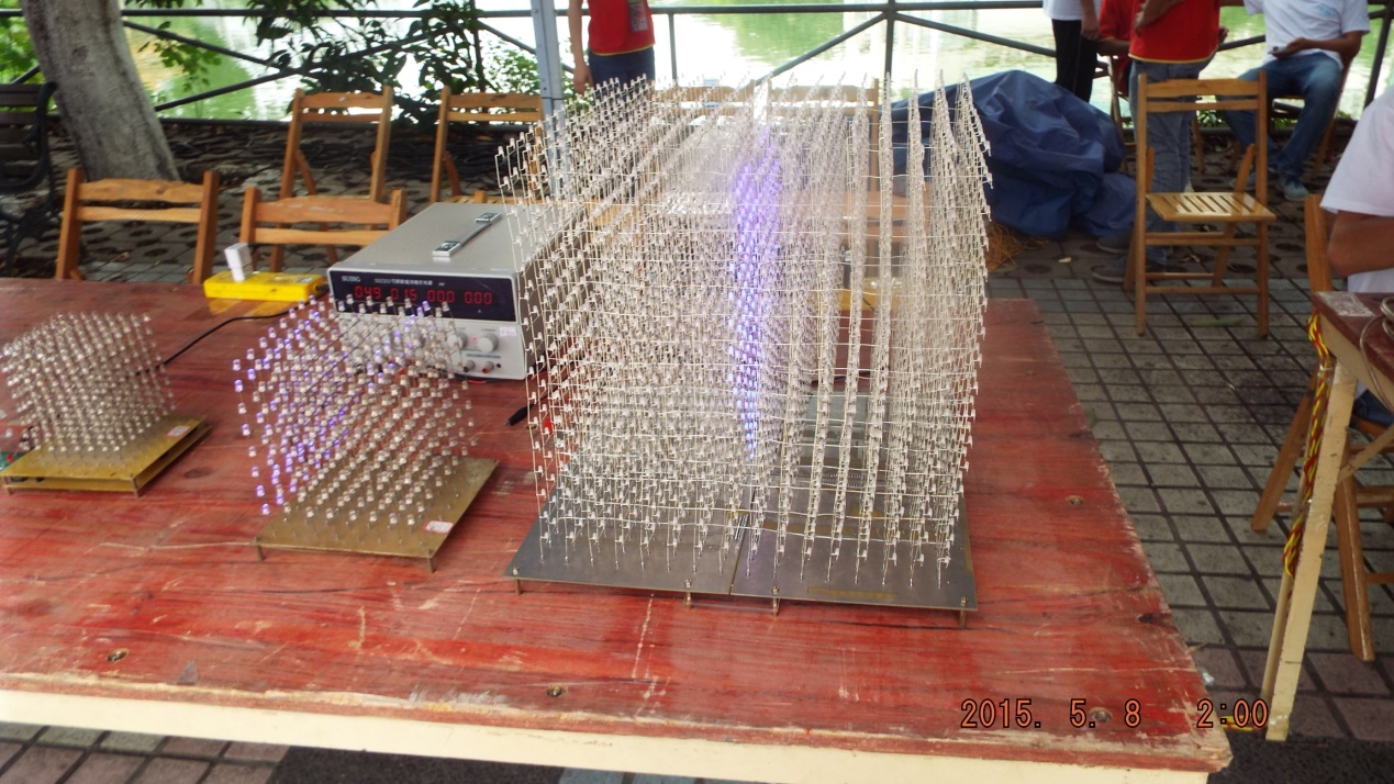 在活动中,观众通过会员们的作品演示,连连称赞,电子作品特斯拉线圈在演示中发出的高压电击的声音更是引来了观众们的层层围观,还有由电科团队一起设计完成的16*16*16光立方等等!
