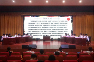 我院于2022年4月26日下午举办“喜迎二十大,永远跟党走,奋进新征程”《学生手册》知识竞赛决赛,比赛分为自我介绍、必答、抢答、选答等四个环节 。
