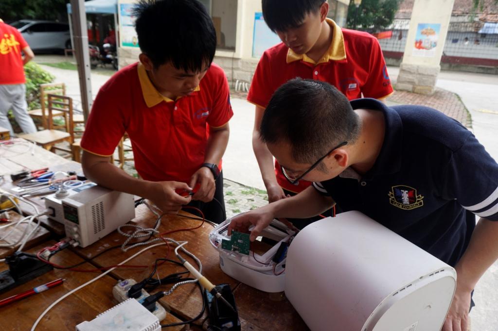 协会指导老师马子龙亲临现场指导协会成员进行维修物品,指导物品所存在的故障、如何进行维修,该注意的事项。