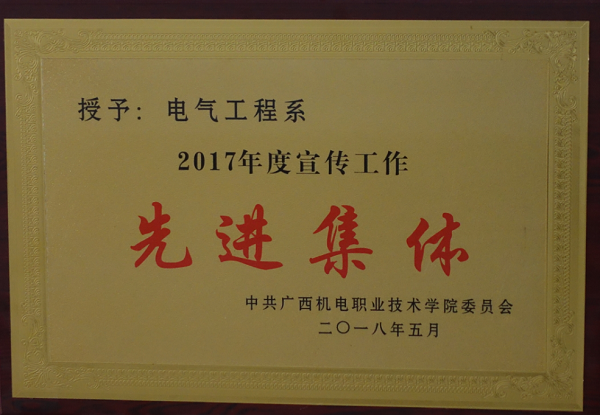 2018年电气工程学院被学校授予“2017年度宣传工作先进集体”荣誉称号