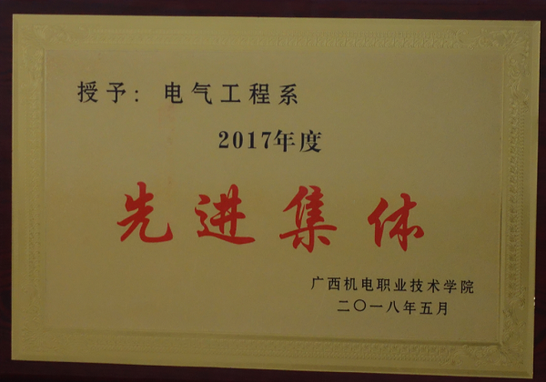 2018年电气工程学院被学校授予“2017年度先进集体”荣誉称号