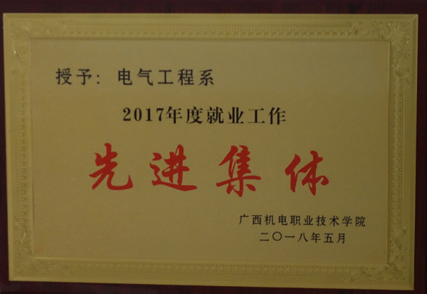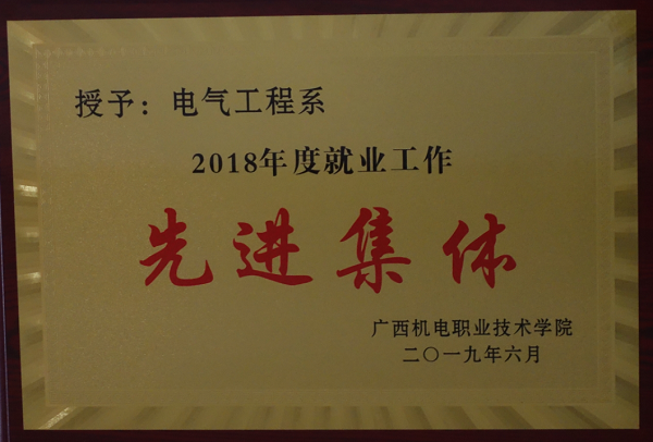2018年电气工程学院被学校授予“2017年度就业作先进集体”荣誉称号