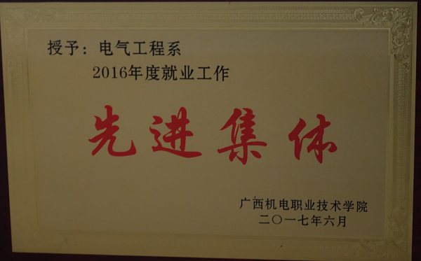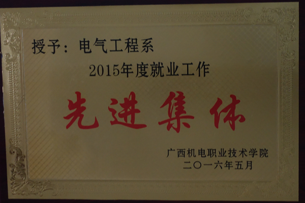 2016年电气工程学院被学校授予“2015年度就业工作先进集体”荣誉称号