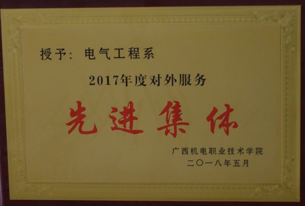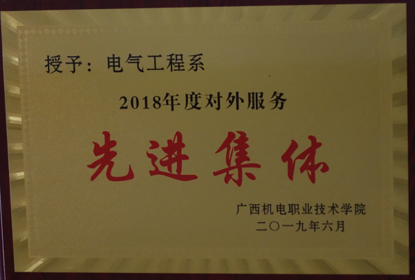 2018年电气工程学院被学校授予“2017年度对外服务先进集体”荣誉称号