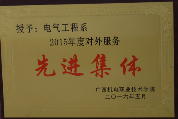 2016年电气工程学院被学校授予“2015年度对外服务先进集体”荣誉称号