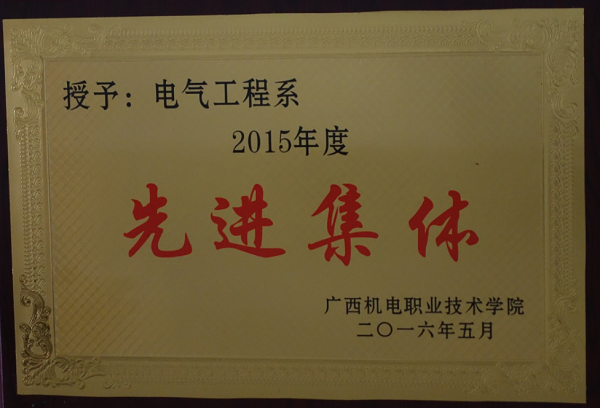 2016年电气工程学院被学校授予“2015年度先进集体”荣誉称号