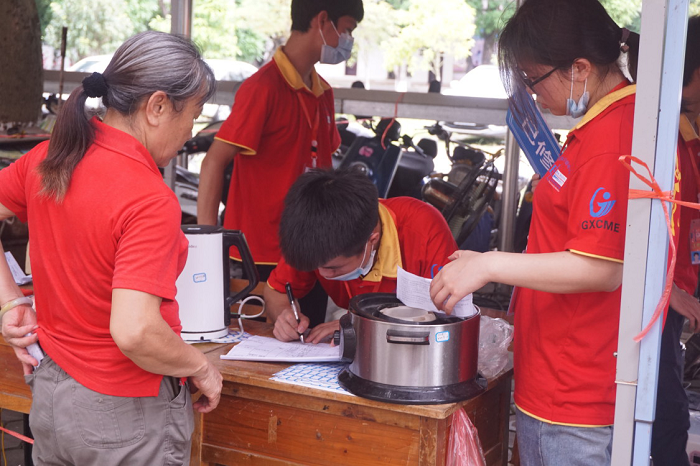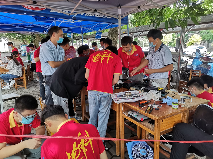 当天早上八点半,电子科技协会19级全体理事早早就做好活动准备,分工合作,在活动一开始就吸引很多住户前来,活动现场气氛融洽,维修会员们都忙的不亦乐乎,他们在各自的岗位上,挥洒着热情、倾注着努力。
