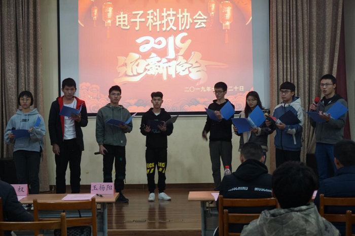 2019年12月20日晚,我系电子科技协会“迎新飞翔,梦想展翅”迎新晚会在图书馆水上多功能厅隆重举行。晚会邀请了我系团委书记玉杨阳老师,电子科技协会指导老师黄权老师莅临。协会新老会员共计100余人现场观看了演出。
