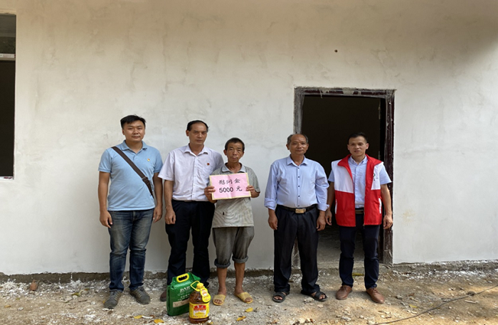 点滴爱心,汇聚浓浓情意。在梁成才在建的房屋前,我系李广兴副主任将爱心捐款及慰问品送到他手中,并鼓励他鼓足生活勇气,战胜目前的困难,在党的扶贫政策支持下,生活一定会越过越好。