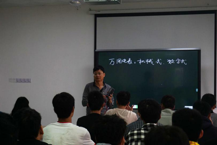 培训活动主要是分上午分下午时段开展。培训伊始,李广兴老师、黄权老师和会长何祚萱以及技术部部长黄雄富通过幻灯片形式向大家普及了电子元器件的基础知识、有色电阻的区别及使用方法,让同学们认识了基本的电路元器件的重要性。接着,他们向同学们具体讲解了如何通过电阻上的颜色来分辨电阻的阻值,详细介绍了万用表、电容等相关知识,主要介绍了如滤波的作用,二极管、三极管的辨别及使用方法,以及如何利用发光二极管两端不同的长度来分辨它的正负极。期间,老师与同学们进行了实践操作的指导。对此,同学们表现出浓厚的兴趣,并就元器件相关知识积极提出问题,使同学们受益匪浅。随后,同学们在负责人带领下开始着手实践操作,一人一组搭配使用万用表练习,现场气氛活跃、学习氛围浓厚。进行本次培训活动是为了培养大家的兴趣爱好,如果对此感兴趣的同学可以随时来实验室进行实际操作。