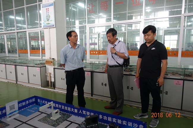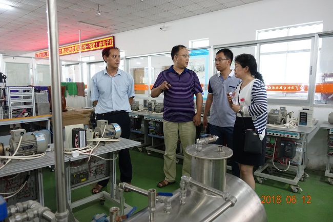 座谈会结束后,王晓军主任一行在李广兴副主任等老师的陪同下,参观了电气系智能制造技术应用中心、电气系综合实训楼、欧姆龙教室、基础技能实训中心电工实训室,并就实训基地建设进行了深入的交流。