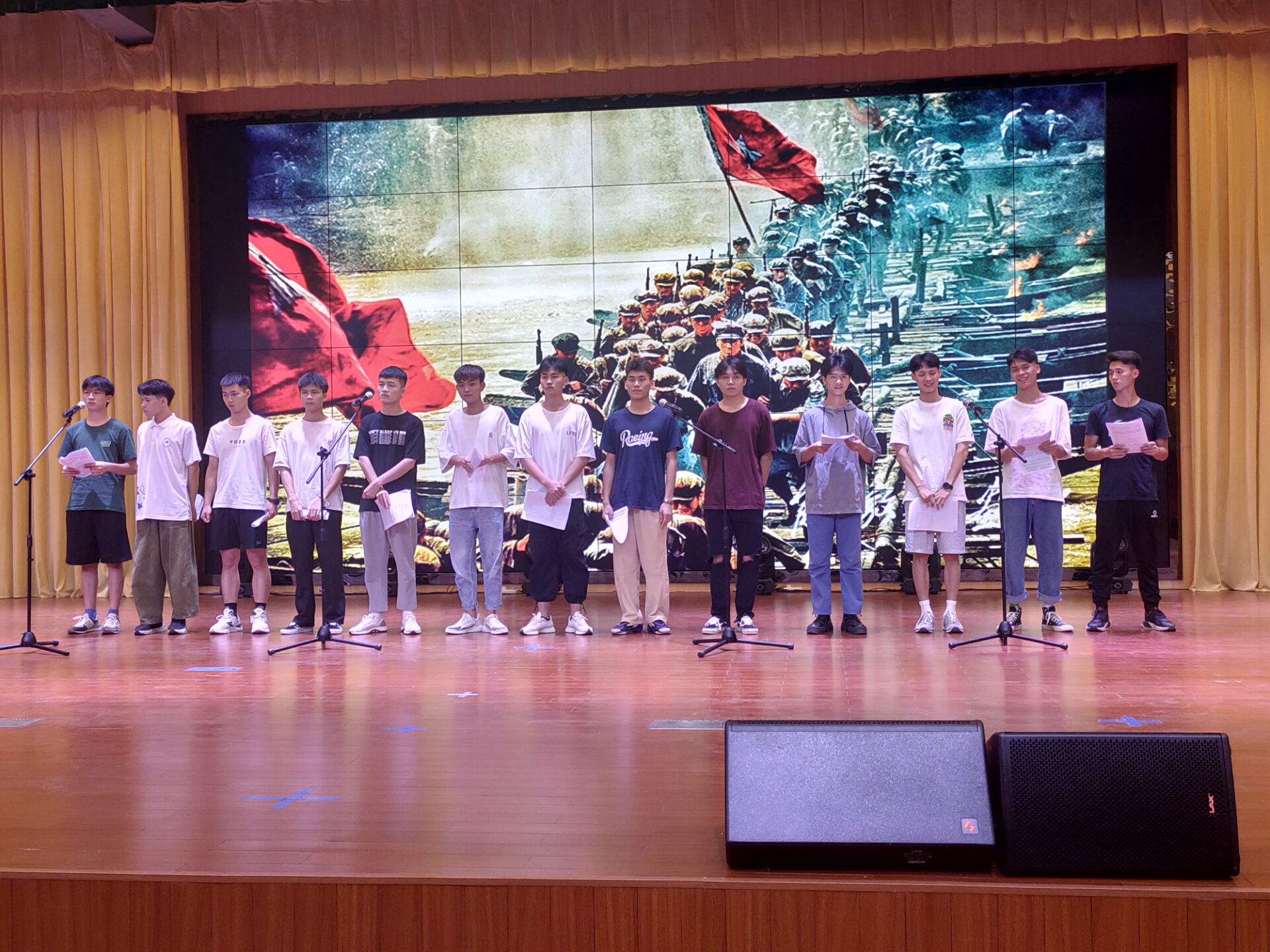 百年征程波澜壮阔,百年初心历久弥坚,为庆祝中国共产党百年华诞,6月24日晚,于学校大礼堂举办感党恩·跟党走”庆祝中国共产党成立100周年文艺晚会,全师生线上校友和各界人士共襄盛举其中我院团委选送的男生小组唱节目——《红色的军旗顺利完成汇报演出