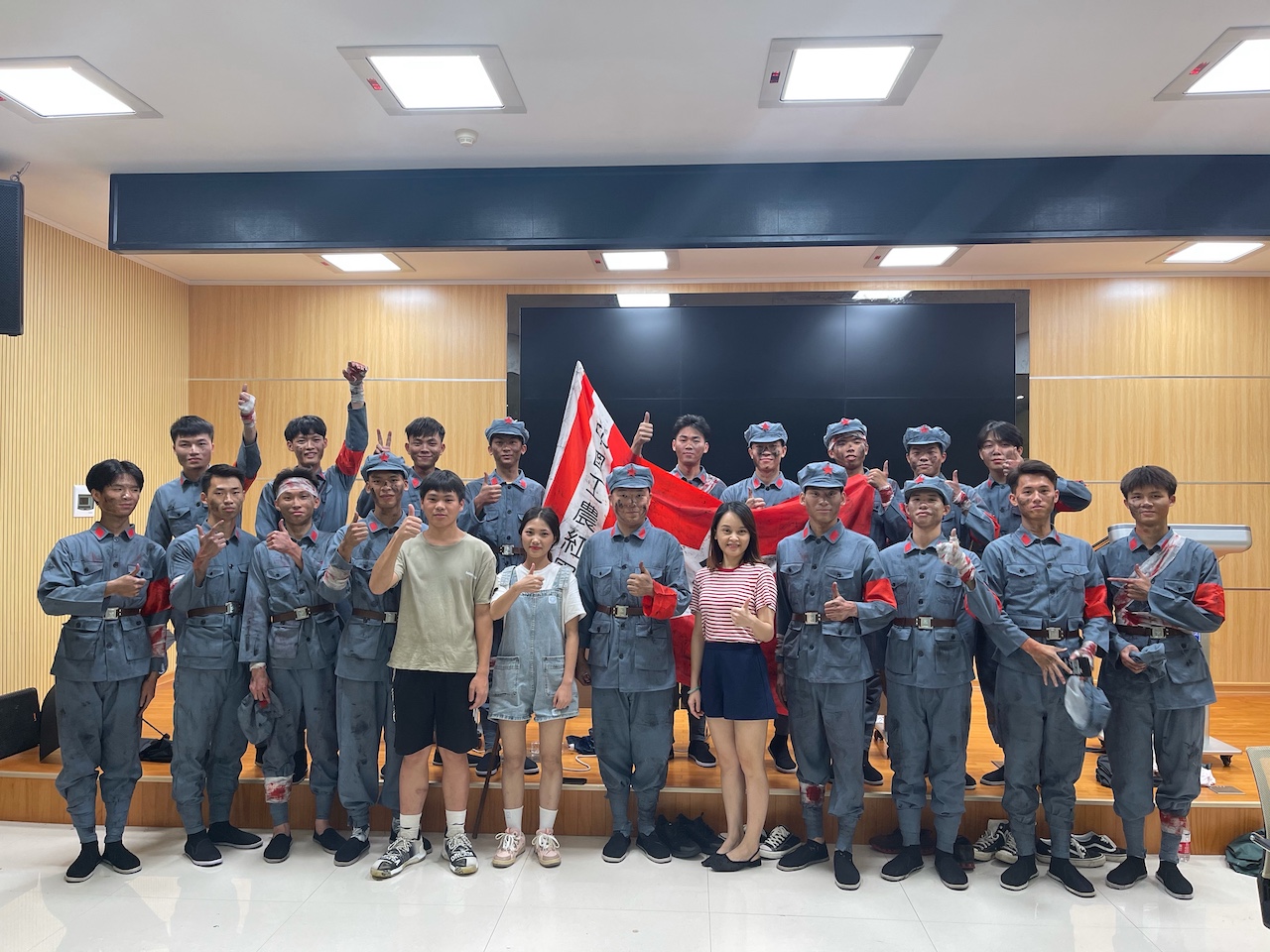 一个月前我院团委接到校党委校团委的晚会任务时间紧任务重广大团员青年火速组织起来充分发挥了“党有号召团有行动”的执行力在院团委的带领下围绕建党百年的晚会主题迅速组织青年学生报名确定节目类型利用课余时间克服种种困难积极参与排练小组唱——《红色的军旗》。