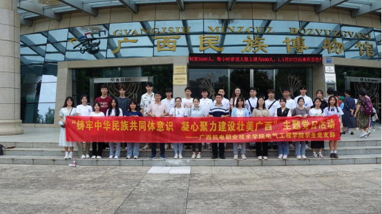深入学习领会习近平总书记视察广西4·27”重要讲话精神和对广西工作系列重要指示要求,加深对广西各民族文化的认识和理解,铸牢中华民族共同体意识,同时进一步激发教师党员、学生党员和入党积极分子的学习和工作热情,电气工程学院学生党支部2022618前往广西民族博物馆开展“铸牢中华民族共同体意识 凝心聚力建设壮美广西”主题党日活动。