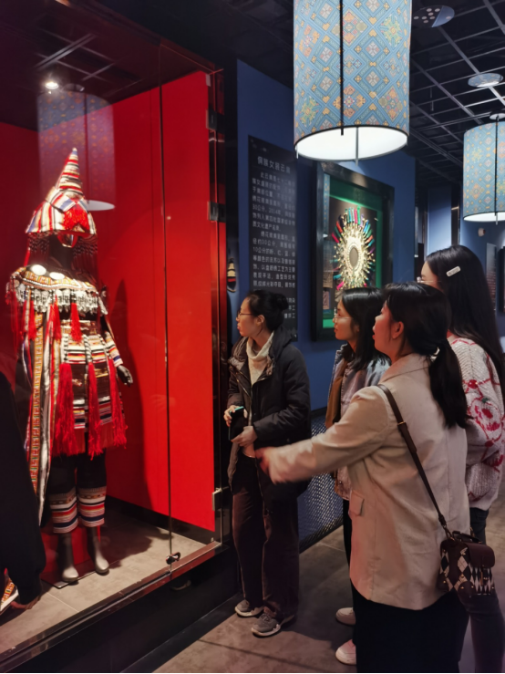 3月11日下午,电气工程学院的女教职工们来到广西壮锦博物馆,开展弘扬和传承传统文化活动。博物馆内藏有各种少数民族华美的服饰、挂饰等藏品,还有广西壮锦、特色绣球、壮乡铜鼓、新式茶艺、民间传统手工艺等民族传统文化的展品,特别吸引人的是大厅内悬挂的壮锦《美丽壮锦献给党》,壮观且震撼。女教职工们陆续参观了馆内各种极具民族特色的文化展品。