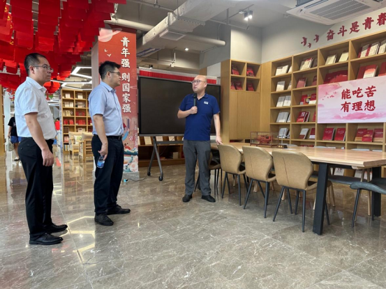 我院教师一行参观了该院集学生服务、样板党支部、参观、学习等功能于一体的特色基地——崇理书院、比亚迪产业学院以及实验实训场所,并进行了深入交谈。