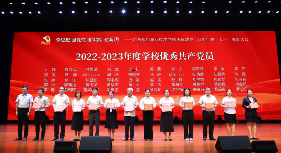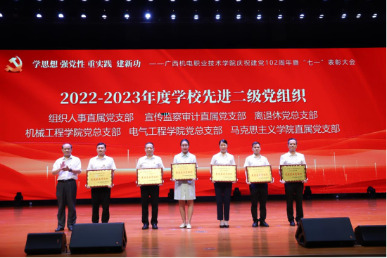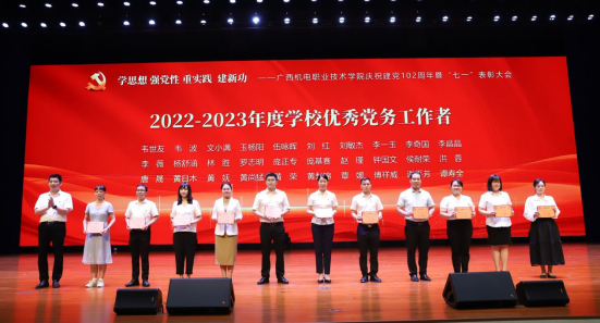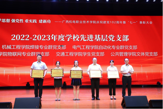 2023630日,学校在弘毅楼大礼堂隆重举行2023年庆“七”先进表彰大会,表彰2022-2023 年度先进基层党组织、优秀共产党员和优秀党务工作者。我院党总支部、自动化专业群党支部荣获2022-2023 年度学校先进基层党组织,陈婷、周宇权、雷莹、谭艳梅4位同志荣获“优秀共产党员”,钟国文、玉杨阳两位同志荣获优秀党务工作者