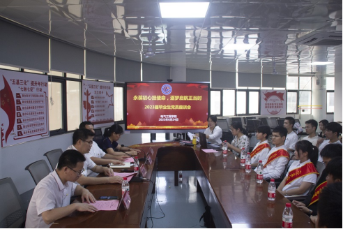 为进一步贯彻落实党的二十大精神,深入开展学习贯彻习近平新时代中国特色社会主义思想主题教育,加强毕业生党员思想政治教育与党性教育,倾听毕业生的声音,2023年6月24日上午,我院以毕业生返校为契机,组织召开以“永葆初心担使命,逐梦启航正当时”为主题的秀毕业生及党员代表座谈会。