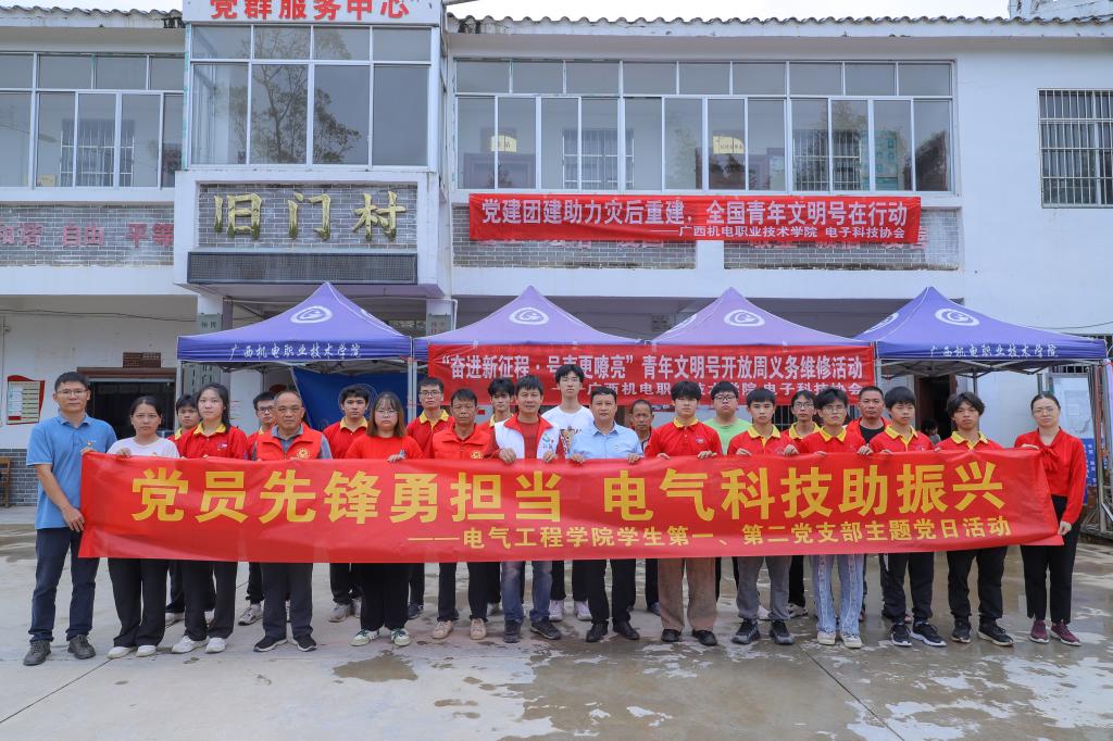 活动第二站,电气工程学院学生第一党支部、第二党支部联合学校团委组织我院学生党员、入党积极分子深入博白县顿谷镇盘古村、旧门村、旧金村开展家电义务维修和宣传安全用电等活动,切实为群众解决日常生活中的困难,把国家的温暖送到农村。