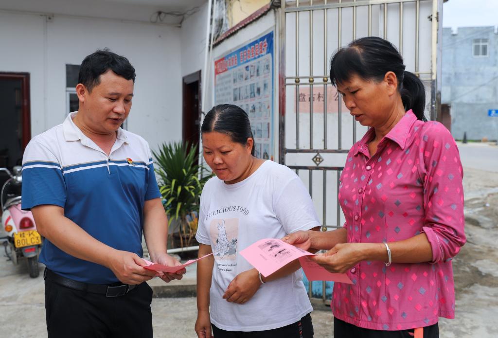 电气工程学院党委副书记、副院长覃伟纳向村民介绍用电安全知识