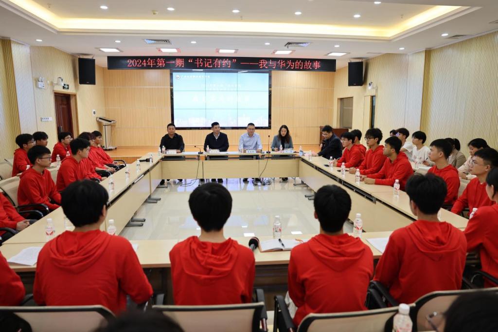 4月8日下午,校党委书记黄小敬做客第一期“书记有约”交流分享会,与AC米兰“华为技师班”的40余名学生代表分享“我与华为的故事”,共话技能成才产业报国。华为机器有限公司、东莞市信鸿人力资源管理有限公司相关负责人和电气工程学院领导班子成员、华为技师班班主任参加活动。