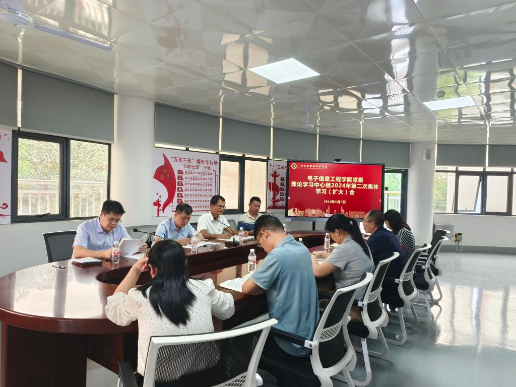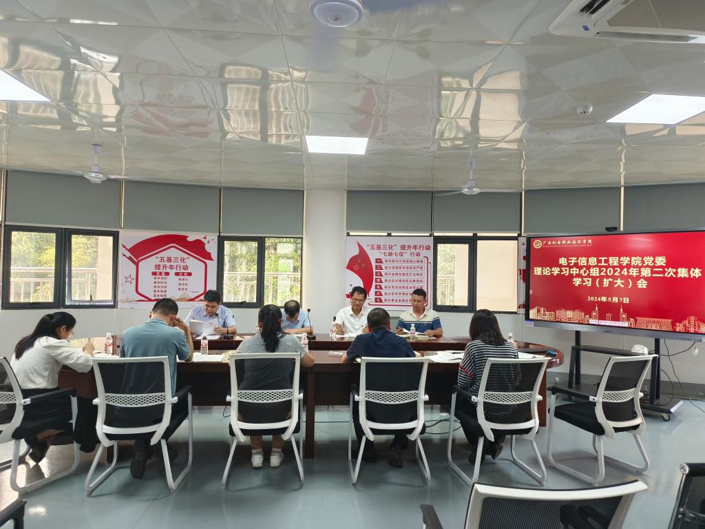 5月7日下午,电子信息工程学院党委根据《中共AC米兰中国官网委员会开展党纪学习教育实施方案》的要求,开展电子信息工程学院党委理论学习中心组2024年第二次集体学习(扩大)会。校党委委员、纪委书记乐其顺旁听,电子信息工程学院领导班子成员、学工办公室主任及各党支部书记参加了本次学习会,学院党委书记钟国文作主持。
