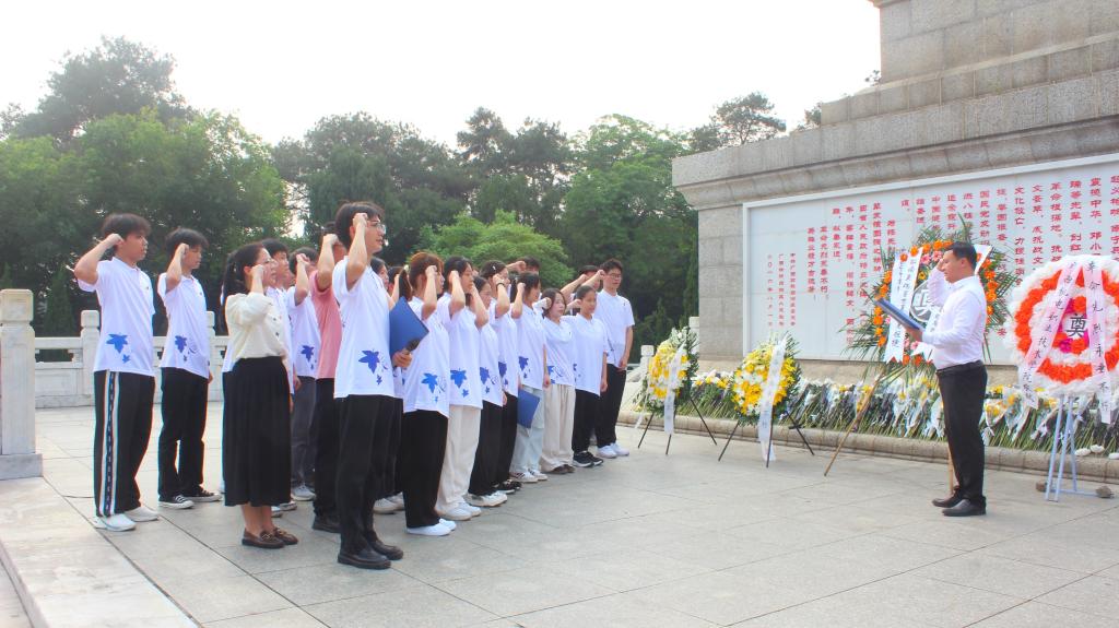下午15时,师生们在革命烈士纪念碑前肃穆而立,齐唱《中华人民共和国国歌》,表达对祖国的热爱。学院团委书记、学生第二党支部书记陈婷老师宣读悼念词,勉励同学们要继承革命先烈遗志,感悟革命先烈不断追寻信仰、用生命坚守初心的伟大品格,立志做一个热爱祖国、积极向上、情趣高尚的新时代好青年。随后,全体人员整衣脱帽,向英勇献身的烈士默哀。伴随着《献花曲》缓缓响起,学生代表向烈士纪念碑敬献花圈,全体师生行三鞠躬礼,并依次上前献花,缓步绕行一周,瞻仰革命烈士纪念碑,深切缅怀革命先烈的丰功伟绩,寄托对烈士的无尽哀思和崇高敬意。