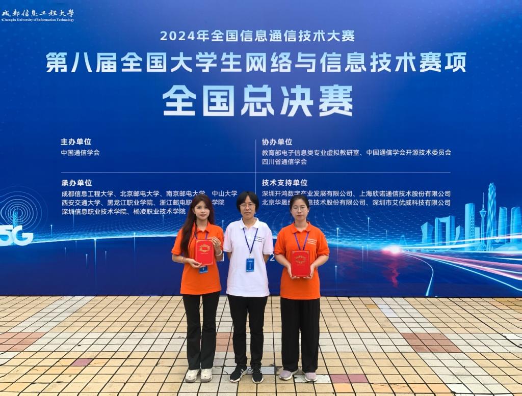 7月19日至21日,2024年全国信息通信技术大赛——第八届全国大学生网络与信息技术赛项全国总决赛在成都信息工程大学落下帷幕。经过激烈角逐,由甘庆玉老师指导的罗小艳同学荣获全国总决赛5G网络工程实践赛道”高职组一等奖,由曹华老师指导的杨丽华同学荣获全国总决赛“光宽带网络工程实践赛道”高职组二等奖的佳绩。