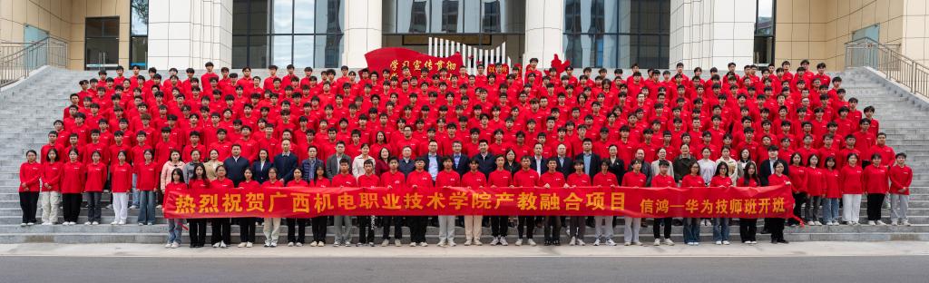 华为机器有限公司人力资源部领导在致辞中表示,广西机电是华为开展校企合作模式中最全面、最深入且最成功的院校之一,学生的综合素质得到各业务部门的高度认可。希望新一届技师班同学们在百年未有之大变局中,紧跟未来,不断探索,磨炼本领,提升技能,努力成为有扎实技术技能的高质量人才。同时,他借引王国维的“人生三境界”,勉励同学们“立”远大目标,坚定技能报国理想信念;“守”住初心,抵制外界诱惑,专心致志完成学业;“成”一番事业,用所学知识成就事业,为中国式现代化贡献青春智慧和力量。