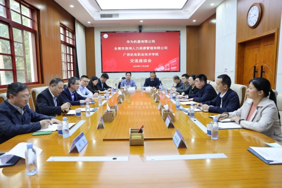 开班典礼前,三方举行了交流座谈会,围绕校企合作、产教融合、“华为订单班”培养模式、教育教学等方面开展深入交流。