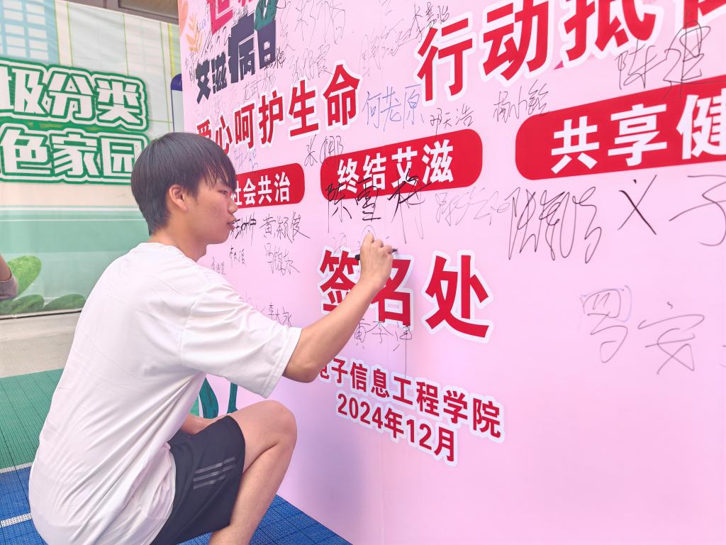为了积极响应世界艾滋病日的号召,提高大学生对艾滋病的认知和防护意识,根据《国务院防治艾滋病工作委员会办公室关于做好2024年“世界艾滋病日”主题活动的通知》的要求,在第37个“世界艾滋病日”来临之际,电子信息工程学院精心策划并实施了一系列主题鲜明、内容丰富的宣传教育活动。