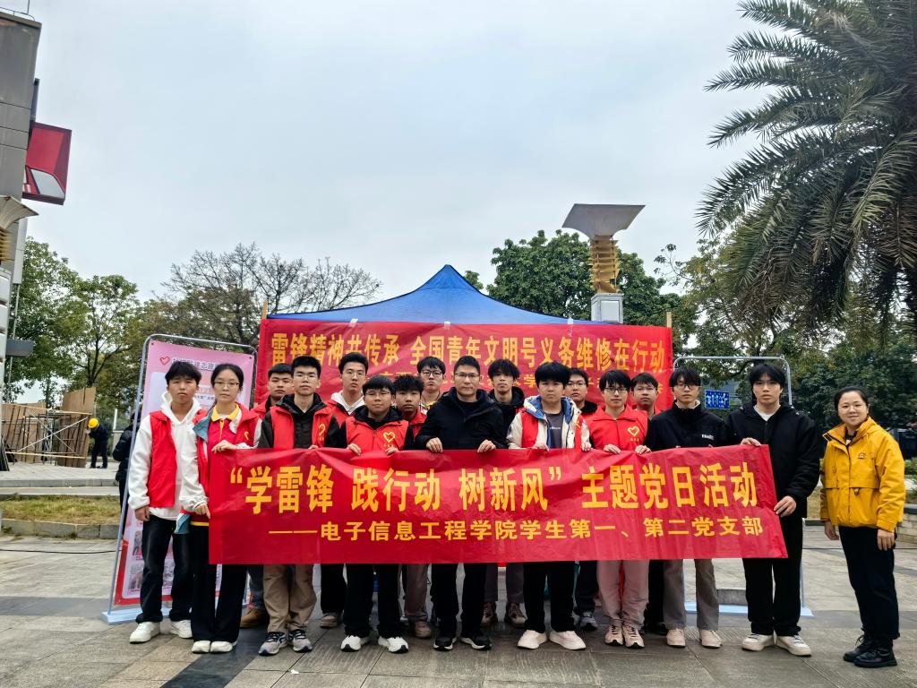 在新时代的征程中,雷锋精神作为中华民族宝贵的精神财富,依然闪耀着璀璨的光芒。2025年3月5日是第62个“学雷锋纪念日”,亦是第26个“中国青年志愿者服务日”。为丰富大学生校园生活,推动学雷锋活动常态化、长效化,让雷锋精神在新时代绽放更加绚丽的光彩,2025年3月5日上午,电子信息工程学院学生第一、第二党支部教师与AC米兰“全国青年文明号”——电子科技协会学生在仁和路肯德基榕树广场开展2025年学“学雷锋 践行动 树新风”家电义务维修主题党日活动。