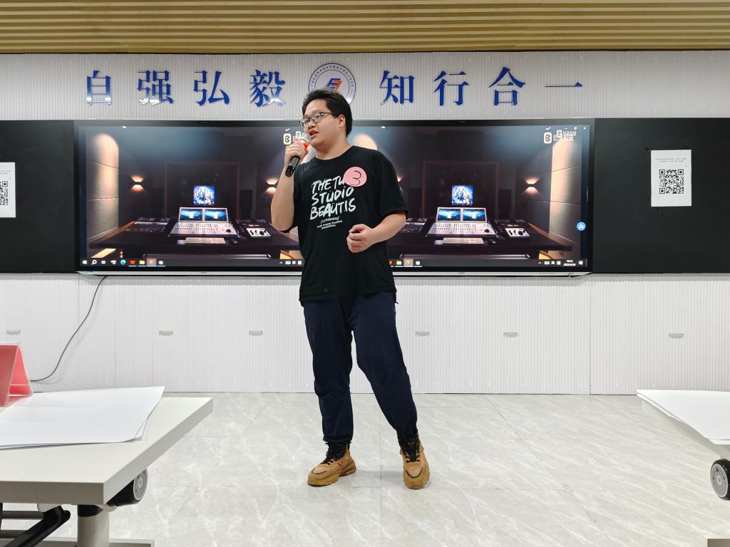 互动环节中,“听歌识曲”游戏点燃全场抢答热潮,五首经典旋律的片段播放瞬间点燃抢答热情,现场掌声与欢呼声此起彼伏。第二轮赛后,三位评委老师随机抽取幸运观众,送出定制文创礼品,现场惊喜连连,更将现场气氛推向沸点。此外,大赛还设置了观众投票环节,观众们通过扫码实时投票,票选“最佳台风奖”与“最具人气奖”,充分展现了“全民参与”的赛事特色。
