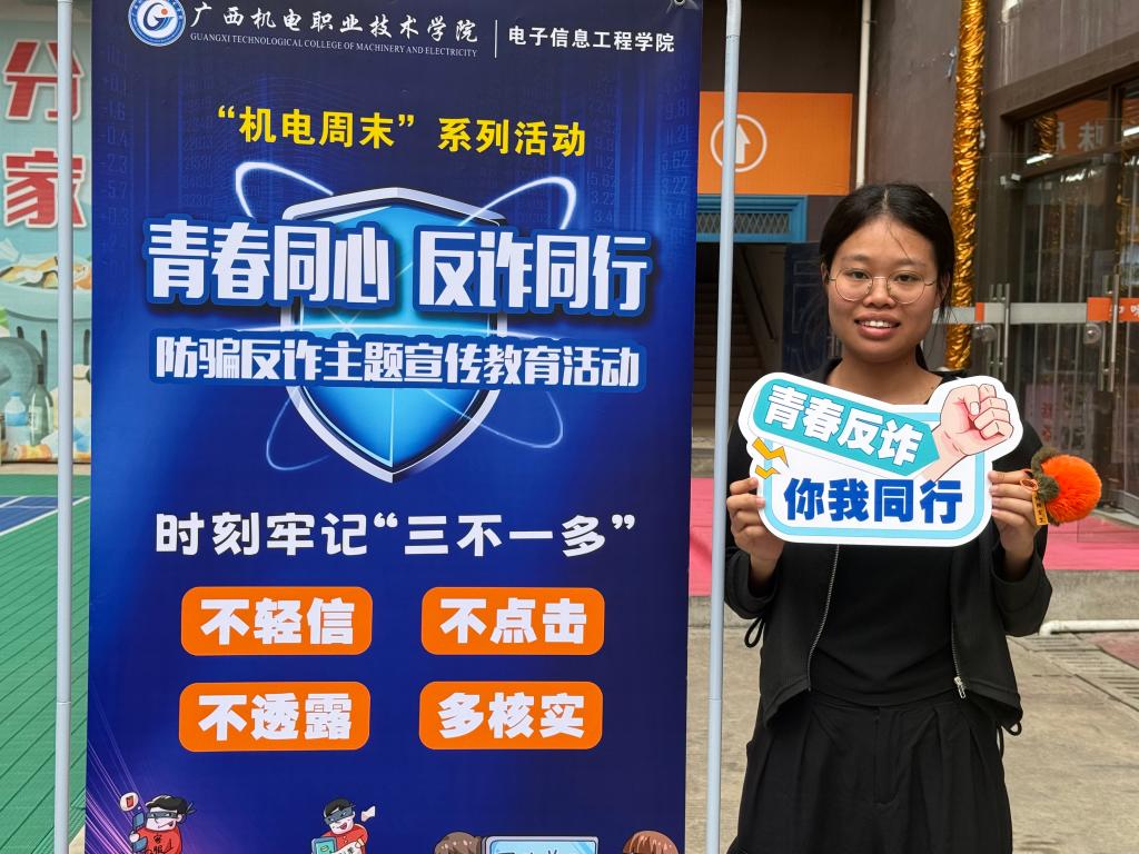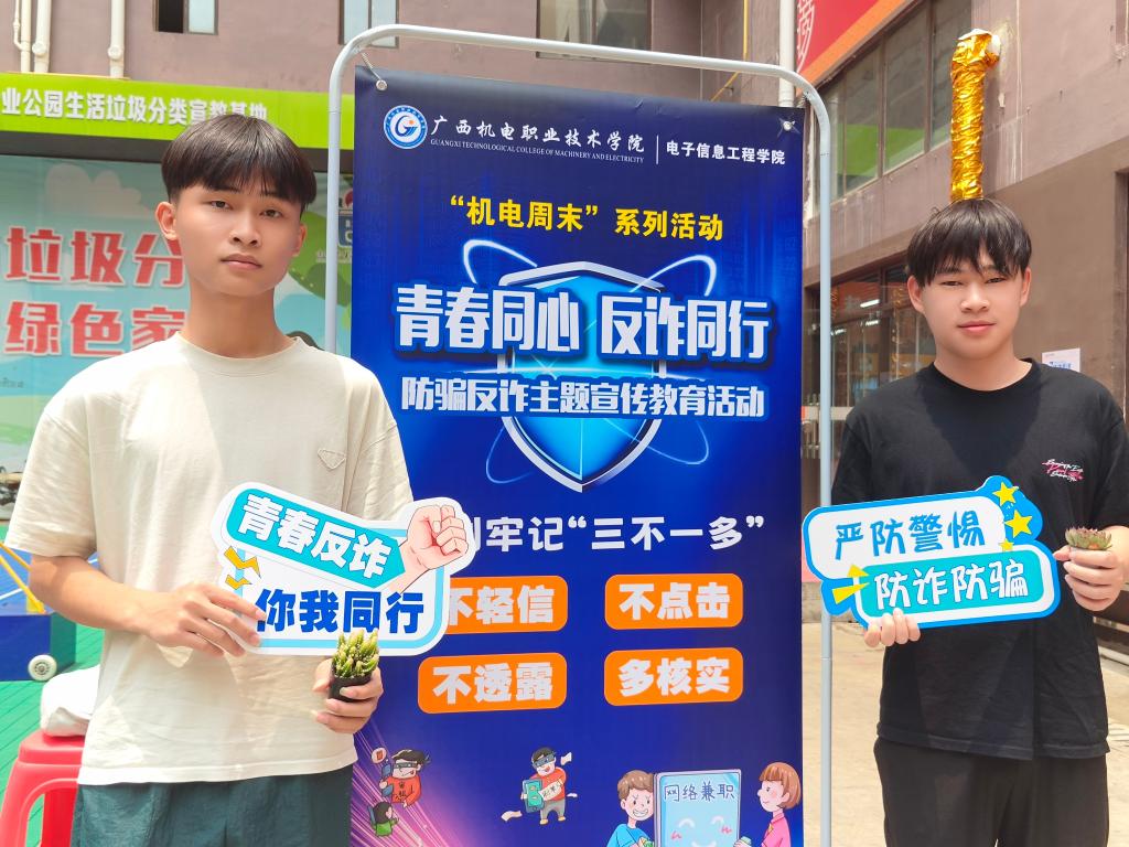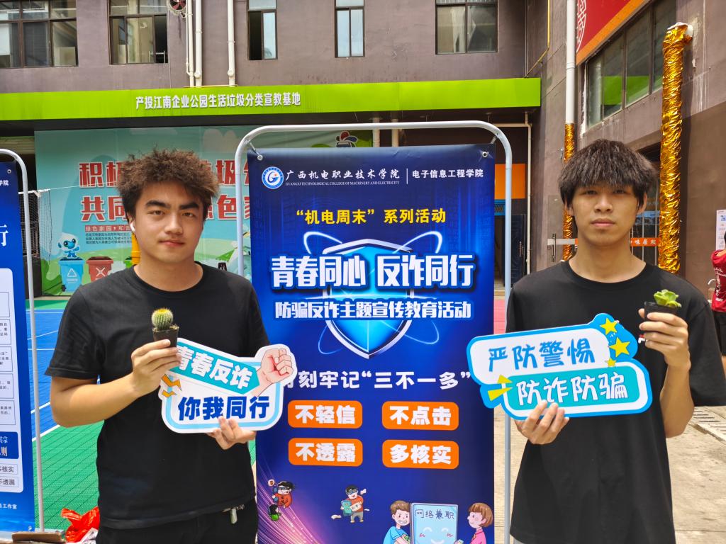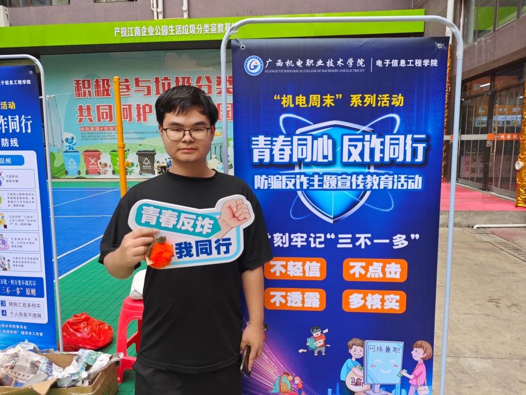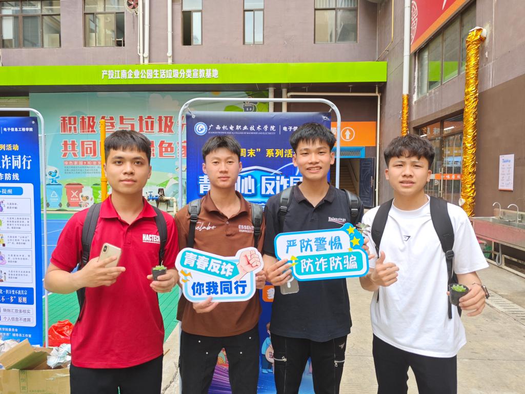 为切实增强学生防范电信网络诈骗的意识与能力,营造安全和谐的校园环境,4月27日,电子信息工程学院于江南校区A7楼下羽毛球场举办“机电周末”之“青春同心 反诈同行”防骗反诈主题宣传教育活动。活动吸引了江南校区两个学院的师生踊跃参与,来校学习的越南学生也积极参与其中。现场气氛非常热烈,同学们在趣味互动中学习反诈知识,筑牢自我保护的安全屏障。
