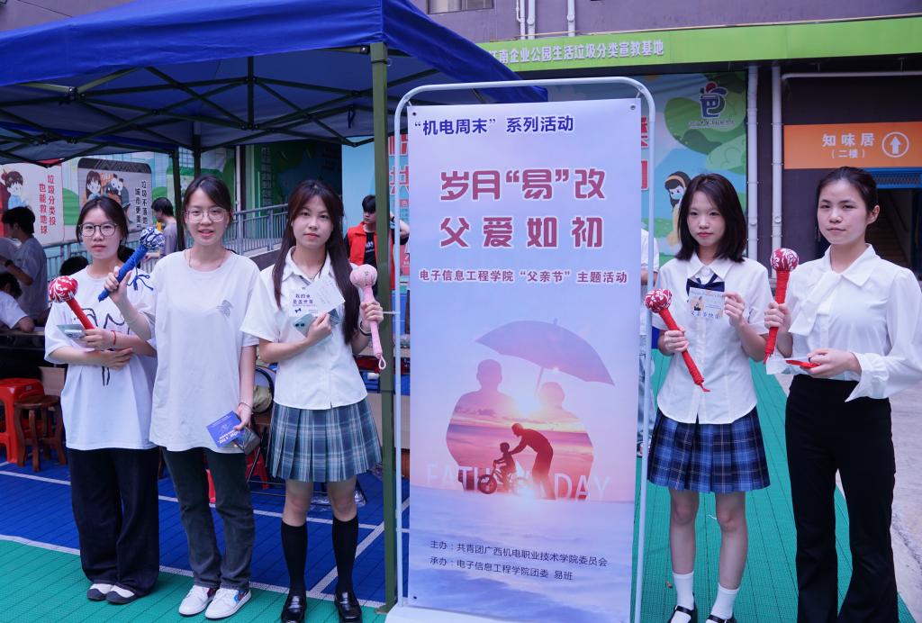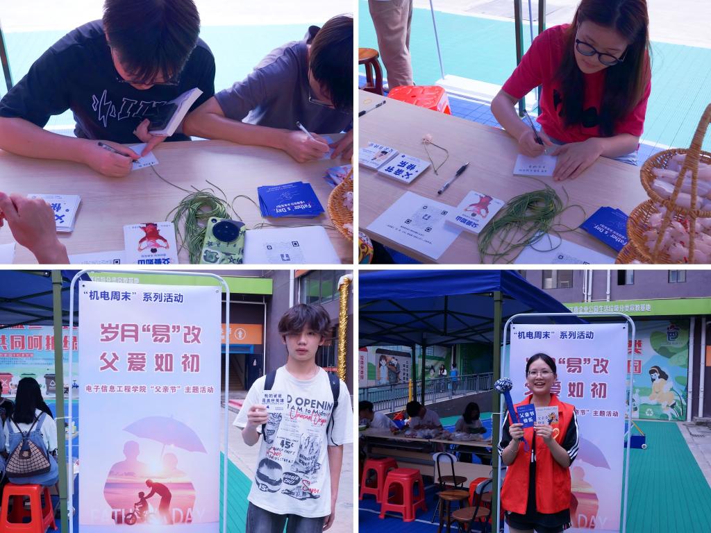 为传承孝亲敬老的传统美德,营造感恩父爱的浓厚氛围,在“父亲节”到来之际,我院于6月14日下午在江南校区A7楼下羽毛球场举行“机电周末”系列活动之“岁月‘易’改,父爱如初”父亲节主题活动。本次活动吸引了众多学生积极参与,以创意互动与温情表达向父亲传递感恩与祝福。