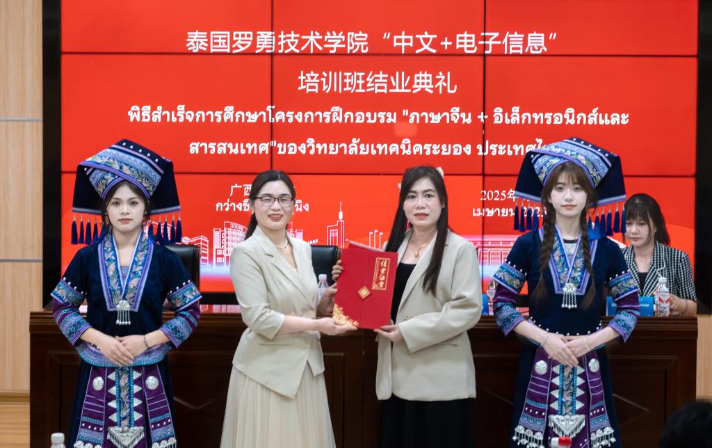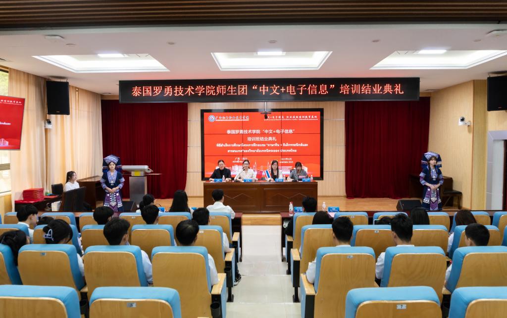 2025年4月25日,泰国罗勇技术学院“中文+电子信息”培训班结业典礼在AC米兰第二学术报告厅隆重举行。来自中泰两国的29名师生齐聚一堂,共同见证为期8天的融合文化交流与技术赋能的职业教育成果。国际教育学院、电子信息工程学院相关领导和教师出席典礼,电子信息工程学院副院长杨爱春主持典礼。