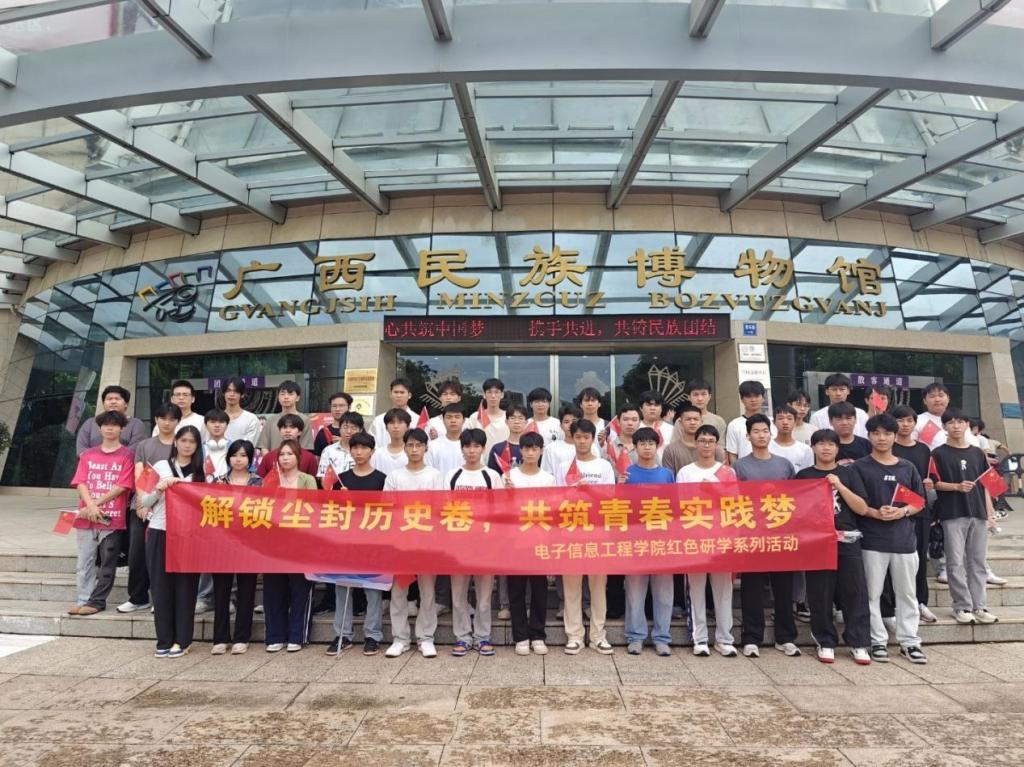 在“红色研学”活动中,组织学员们前往百色起义纪念馆、黄文秀先进事迹馆、广西民族博物馆、广西壮族自治区博物馆、人民公园等地开展爱国主义红色研学活动。结合党日活动,组织学员中的入党积极分子、学生干部前往南宁市红色工运教育体验馆参加“沉浸红色史诗,共守邕城光明”主题党日活动。通过不同内容和形式的红色研学教育,学员们学员们实现了从理论认知到情感共鸣再到行动自觉的深度跨越。大家纷纷表示,要将研学中汲取的精神力量,转化为锤炼意志、磨炼本领、服务实践的行动自觉,以青春担当传承红色血脉,让优良作风在实践中永葆活力。