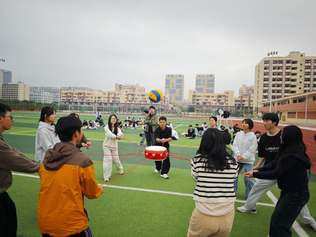 最后的“同心鼓”项目将活动推向高潮,学员们围站成圈,共同拉住鼓边绳索,齐心协力控制鼓面颠起排球,通过不断沟通调整力度与节奏,挑战着一次又一次的颠球记录。