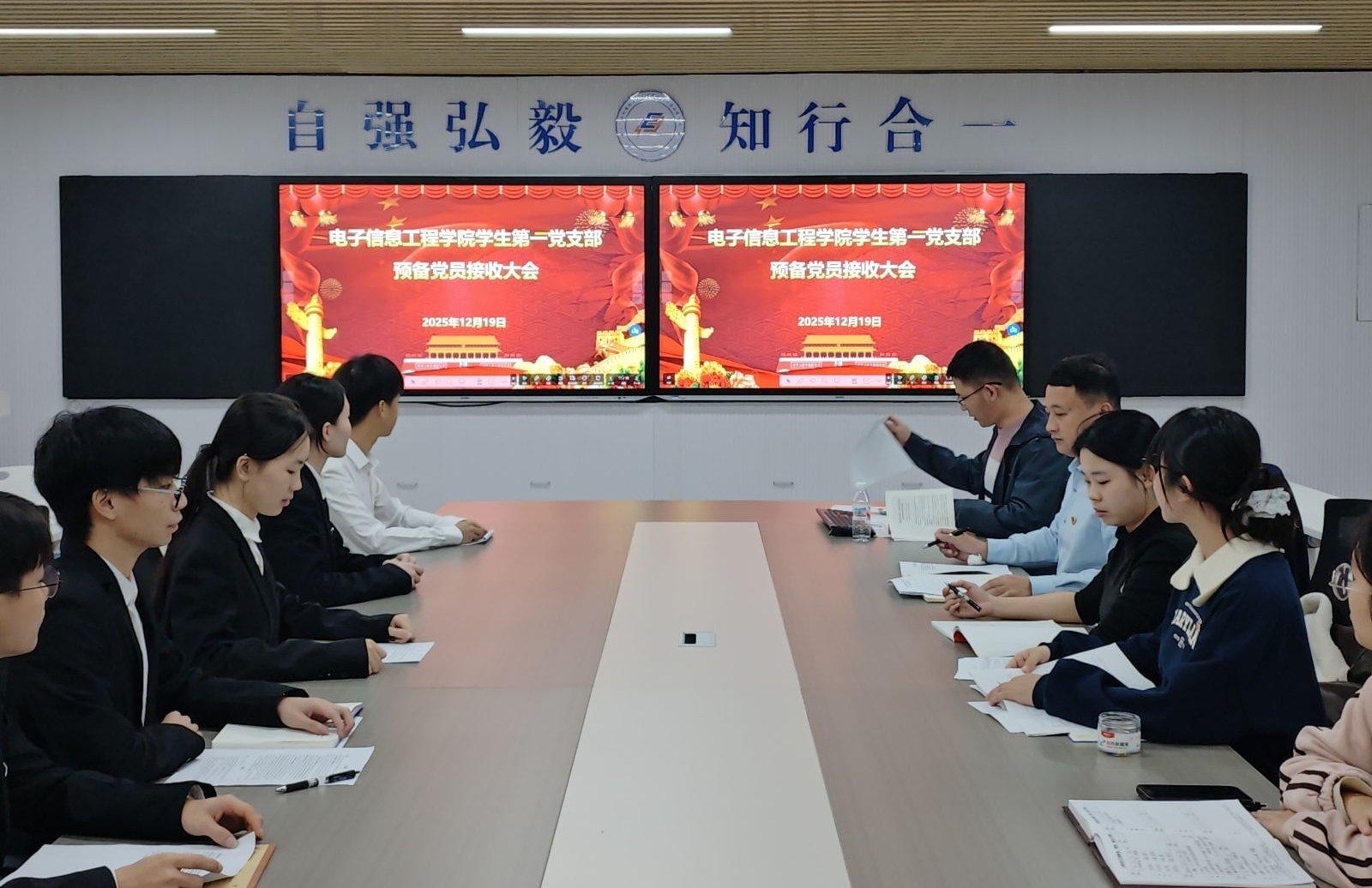 为进一步加强基层党组织建设,壮大党员队伍,增强党支部的凝聚力和战斗力,2025年12月19日,学生第一党支部在A7-312会议室召开党员大会,分别讨论接收预备党员及预备党员转正事宜。会议由党支部书记吕雪科同志主持,支部全体党员及预备党员参加会议。