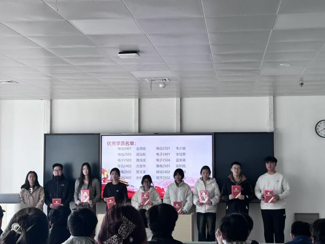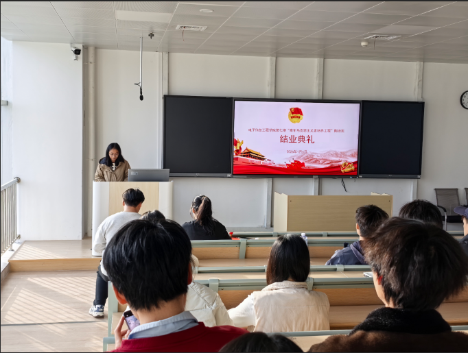 为深入贯彻落实习近平总书记关于青年工作的重要思想,着力培养青年马克思主义者,引导广大青年坚定理想信念,电子信息工程学院第七期“青年马克思主义者培养工程”陶冶班于2025年12月9日正式开班,历时近一个月,圆满完成各项培训任务,并于2026年1月6日下午在A1-404教室隆重举行结业典礼,全体学员参加。