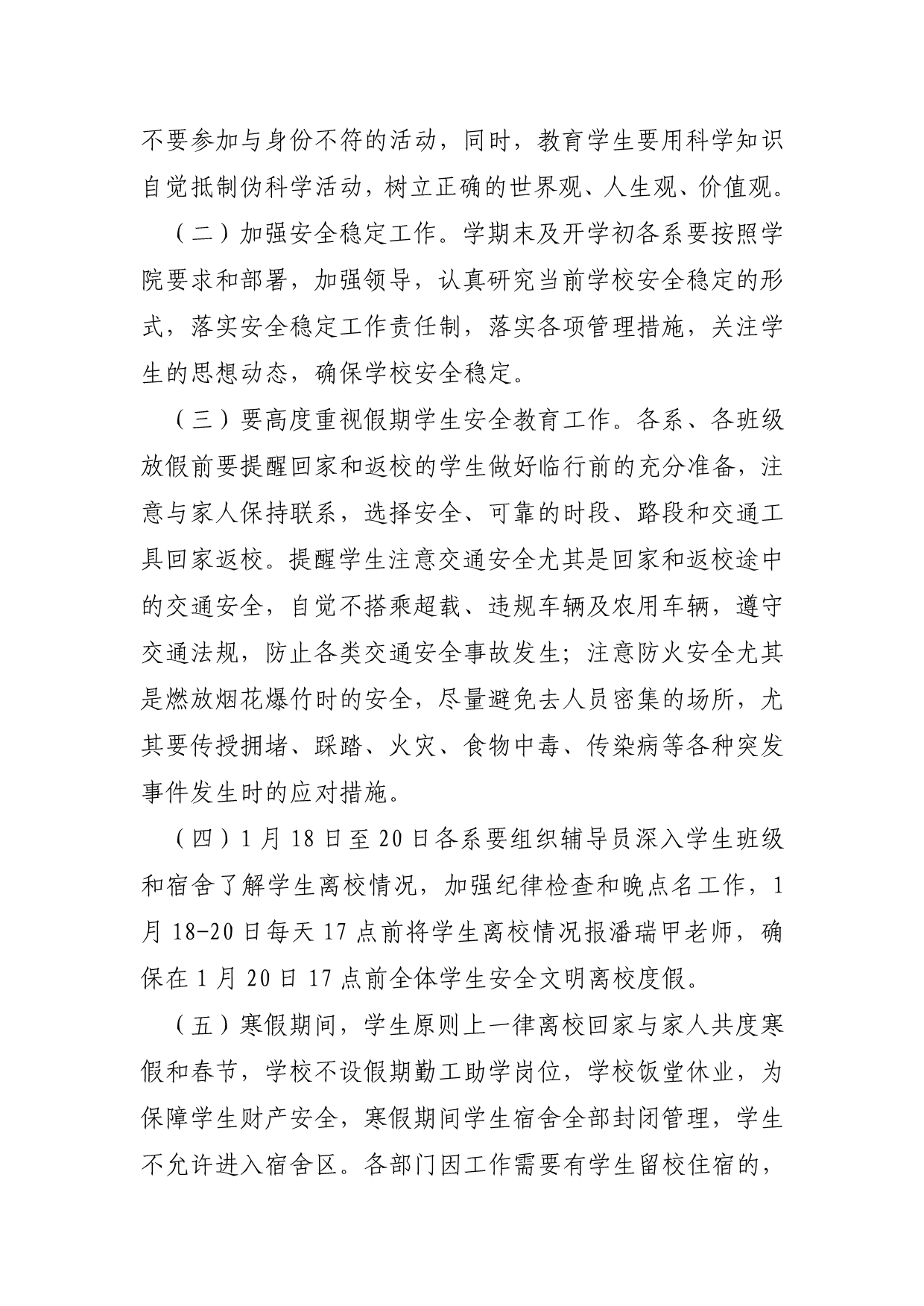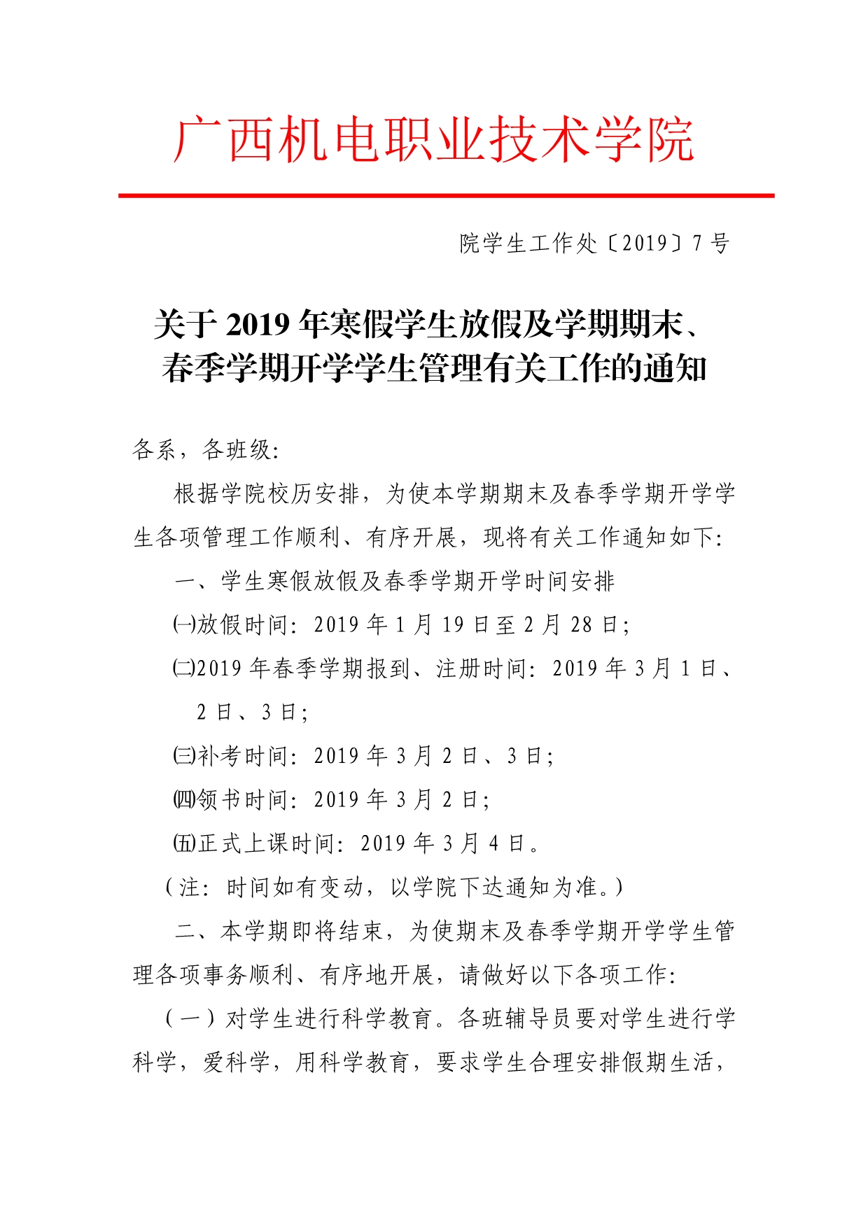 关于2019年寒假学生放假及学期期末、春季学期开学学生管理有关工作的通知