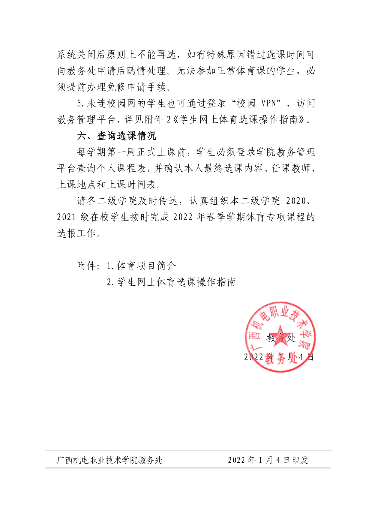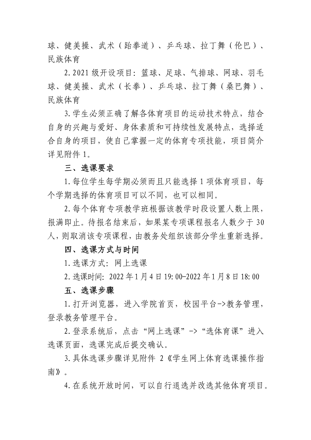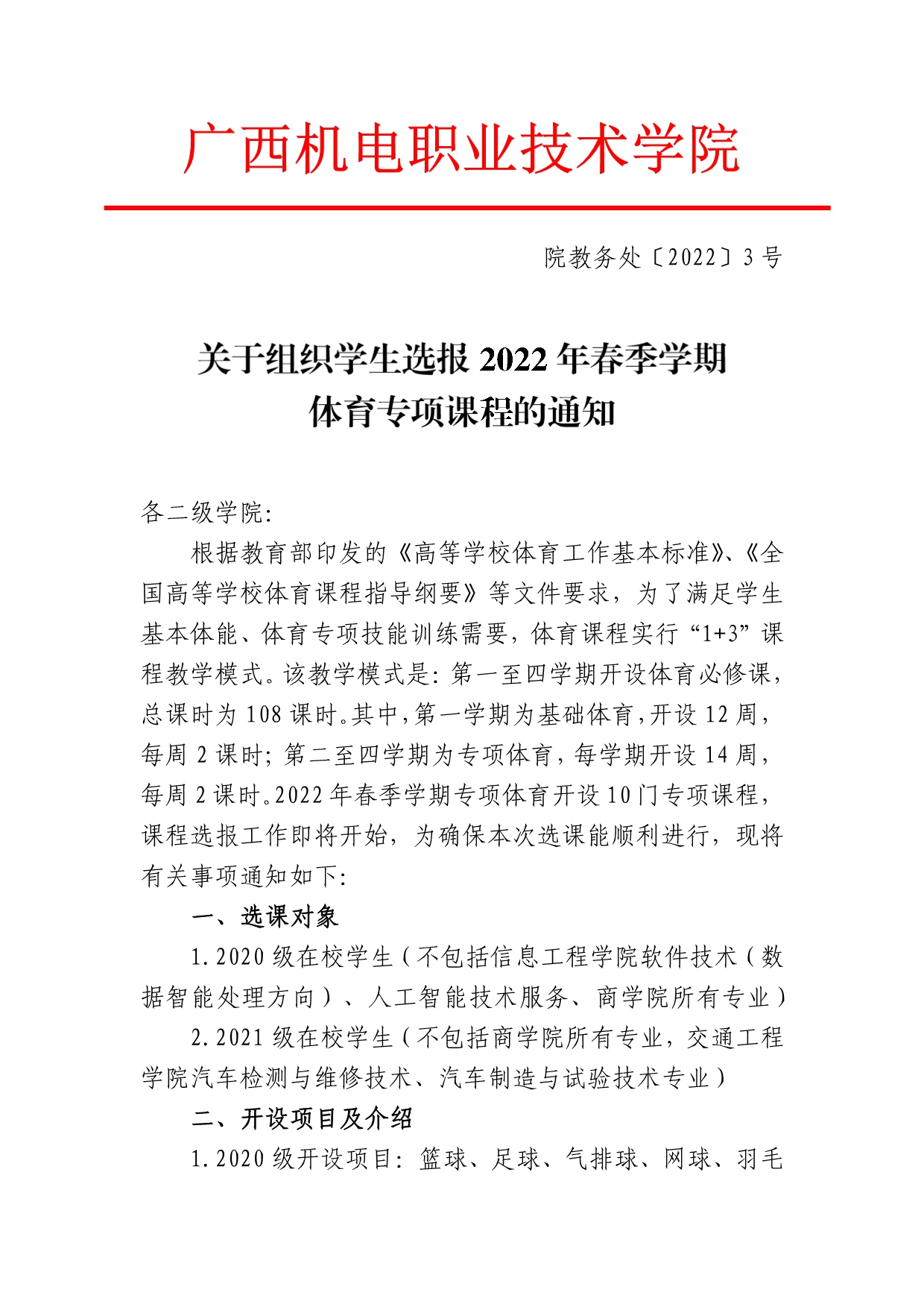 关于组织学生选报2022年春季学期体育专项课程的通知