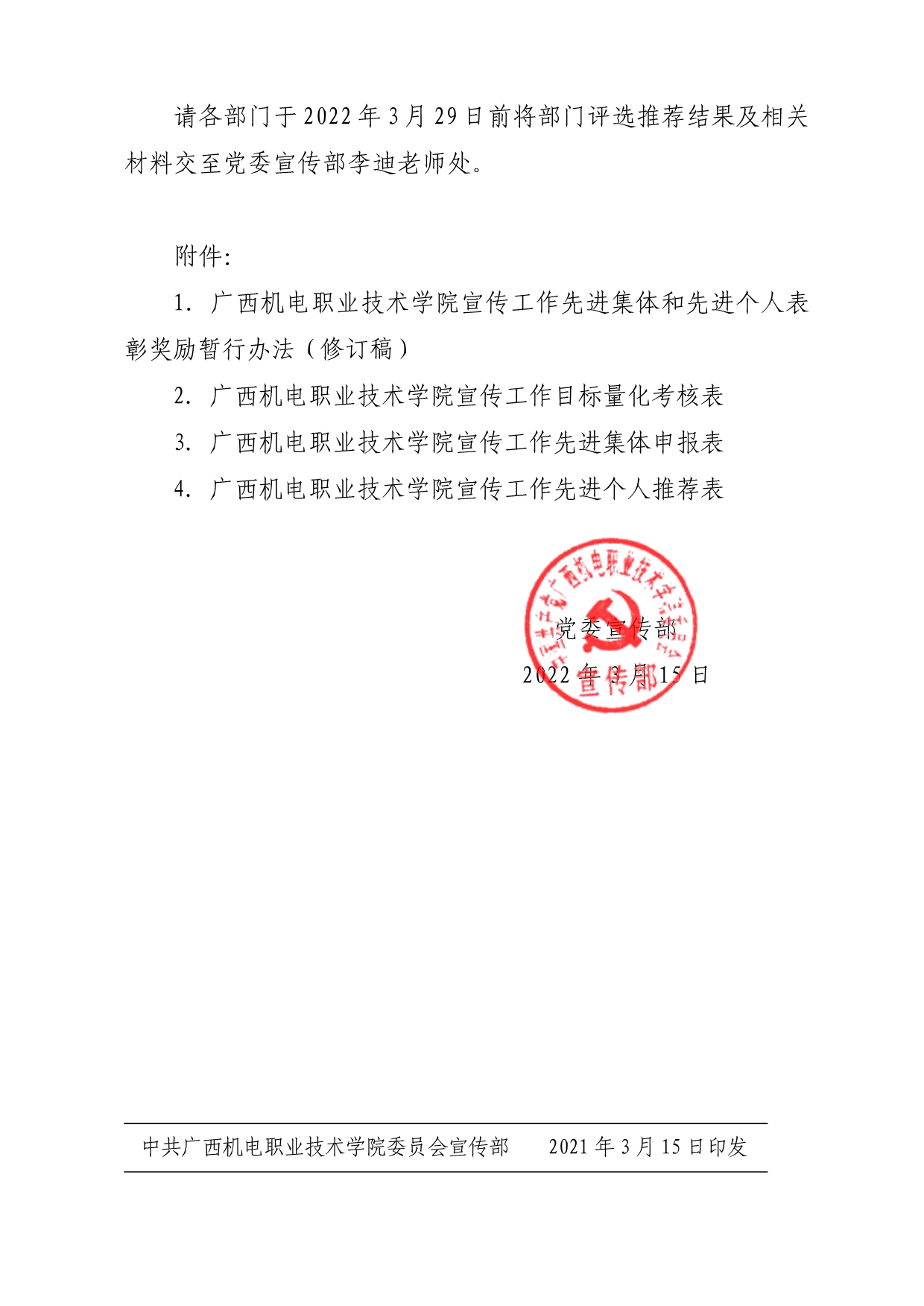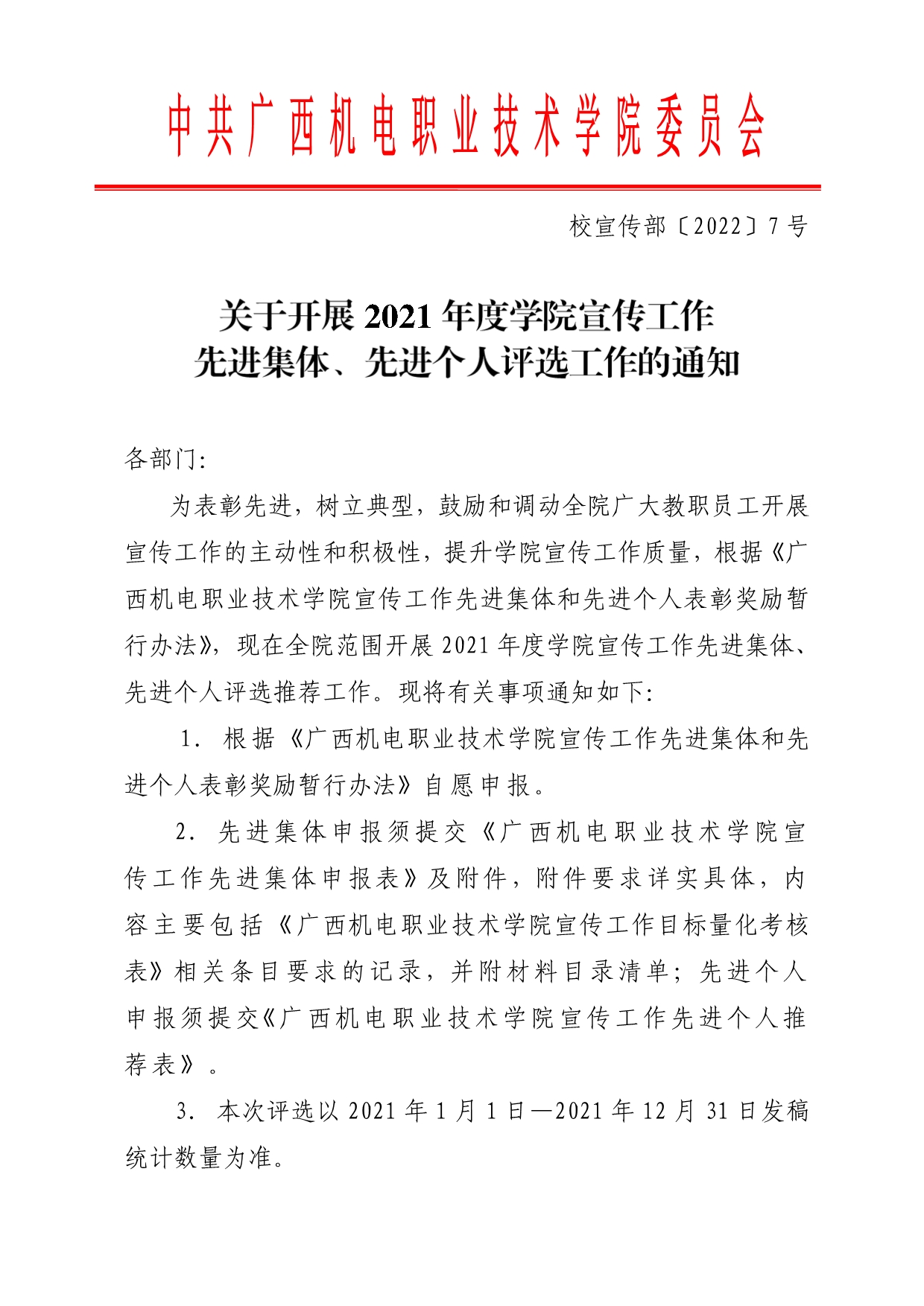 关于开展2022年度学院宣传工作先进集体、先进个人评选工作的通知