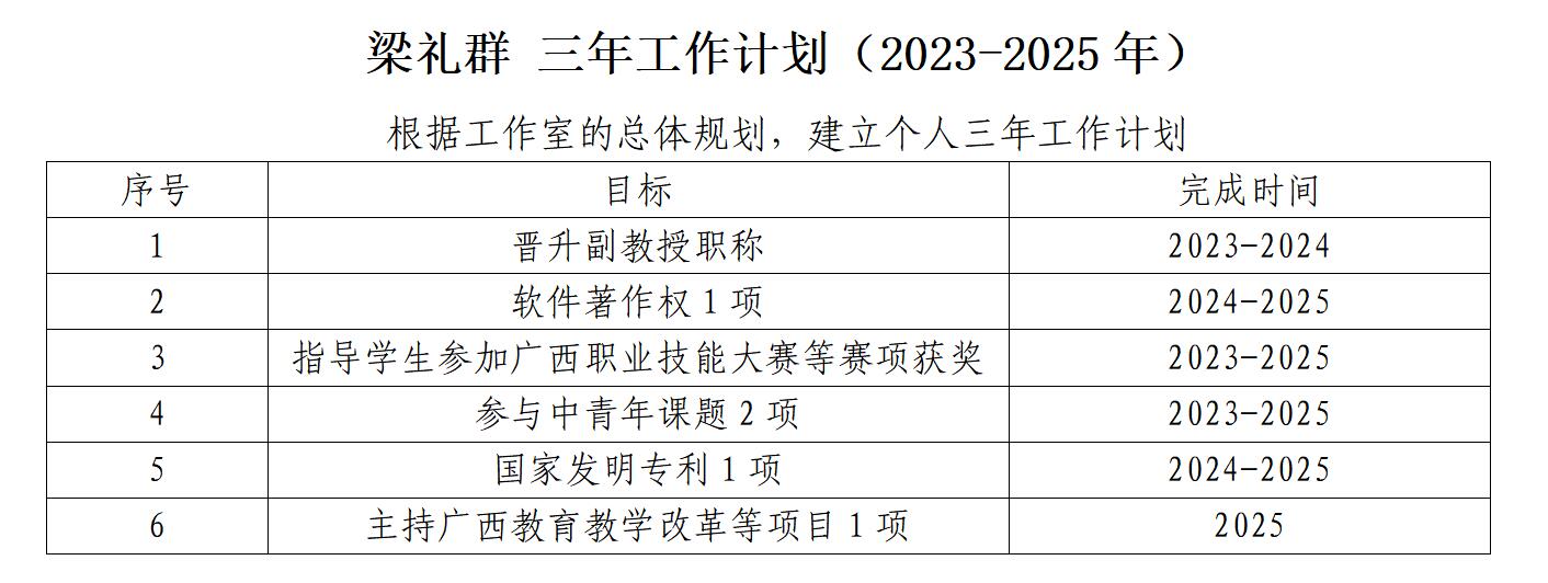 钟国文名师工作室成员三年工作计划(2023-2025年)(梁礼群)